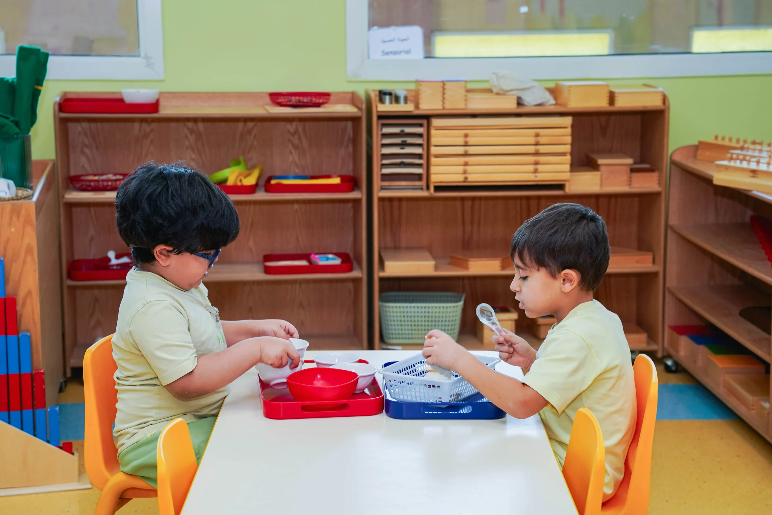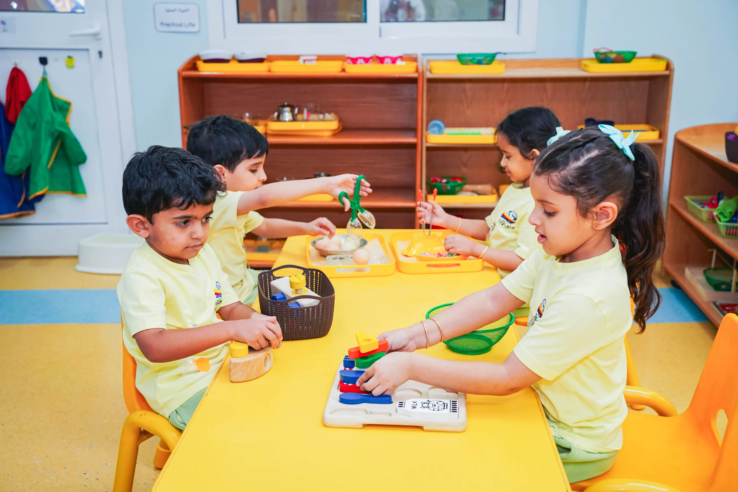 Practical life develops the skills that children need in their daily life, such as getting dressed, preparing food, proper hygiene, and taking care of the environment around them. It also focuses on social skills, such as greeting, helping others, and social behaviors.